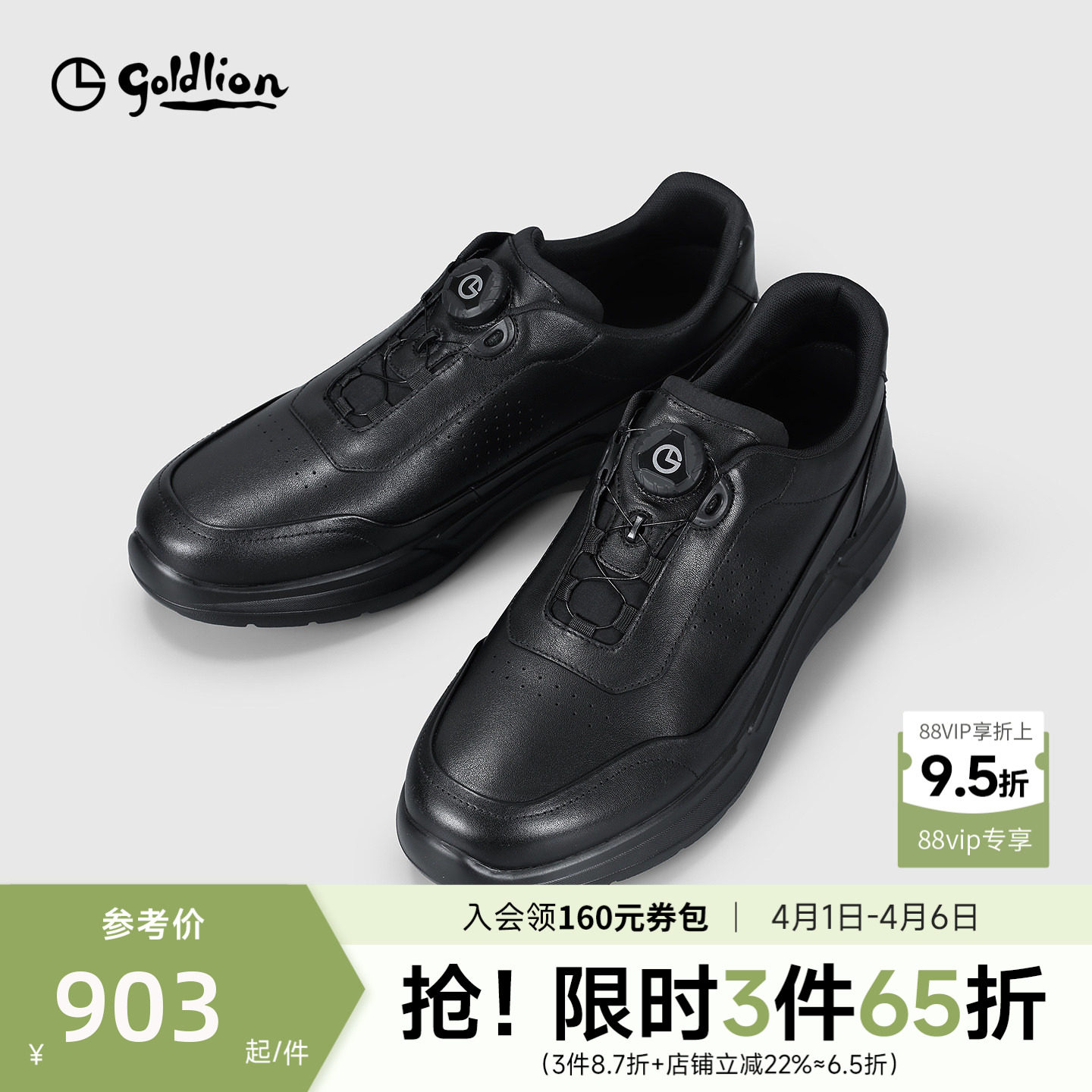 金利来男鞋官方正品春季新款商务休闲鞋男士真皮通勤黑色运动鞋子