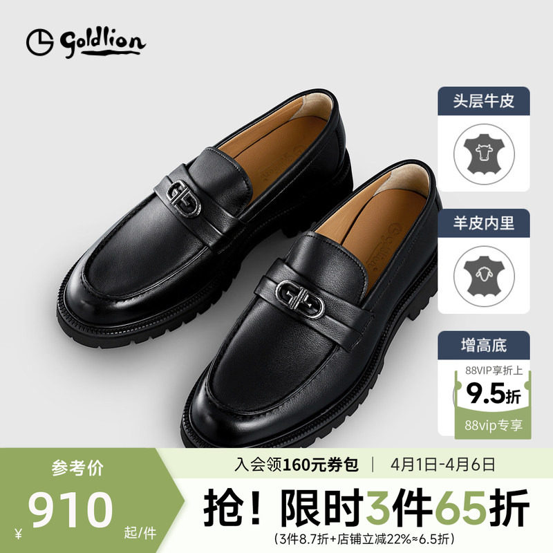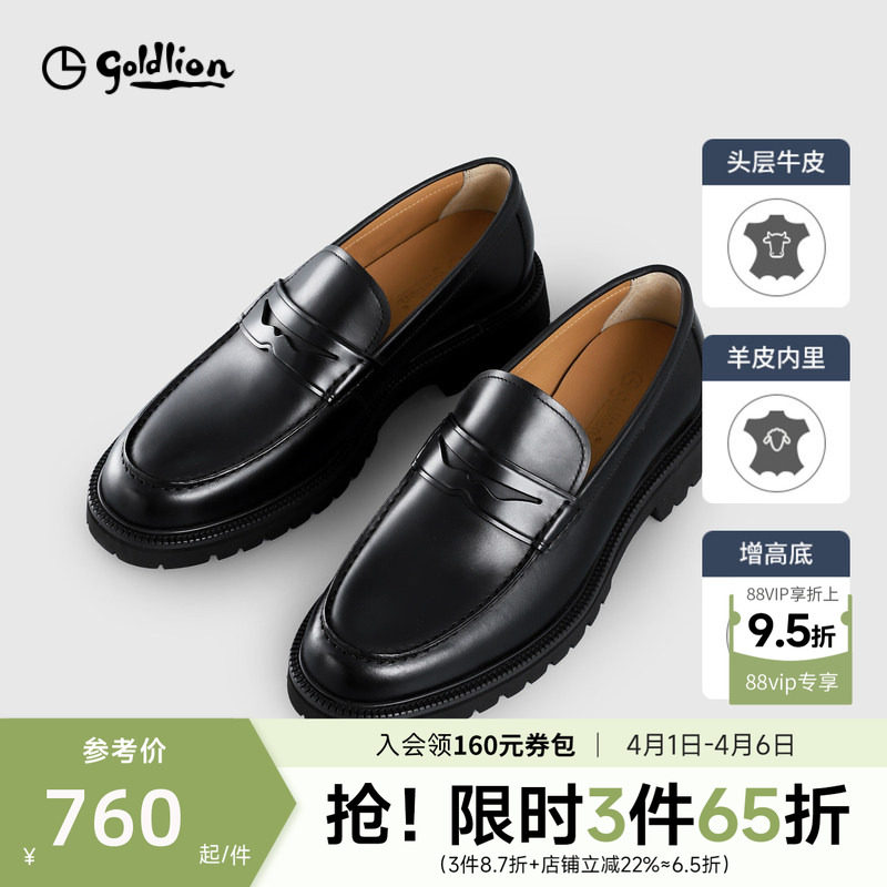 【头层牛皮】金利来新款商务男士皮鞋休闲厚底增高一脚蹬真皮男鞋