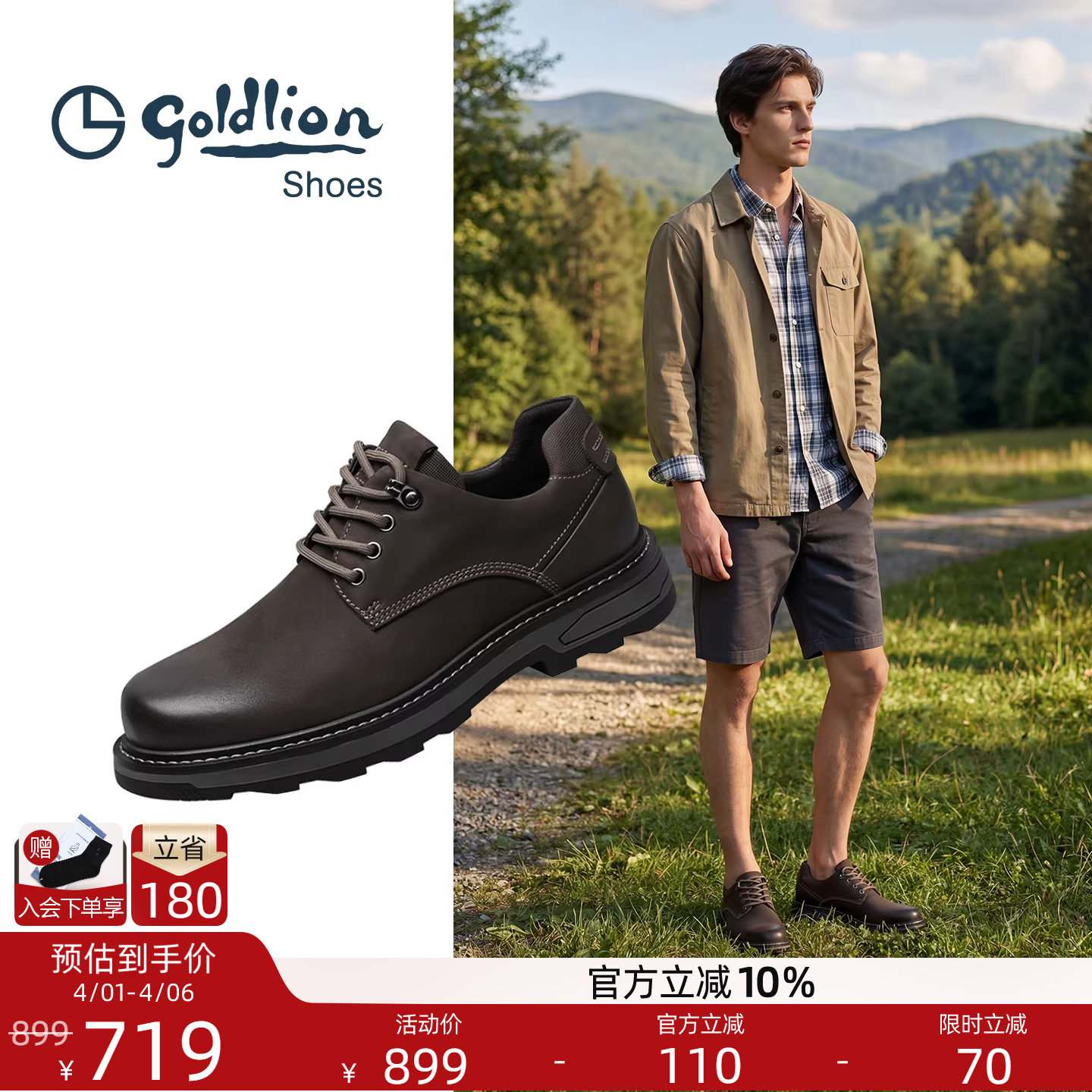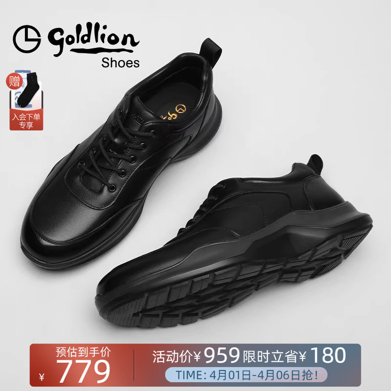 Goldlion男鞋2026春季新款真皮运动鞋户外越野防滑耐磨厚底休闲鞋
