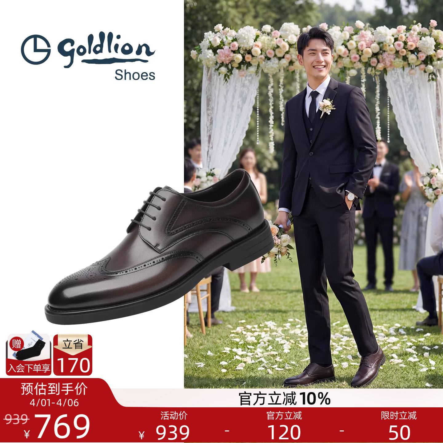 台球运动系列 Goldlion/金利来男正装鞋英伦典雅雕花布洛克鞋皮鞋