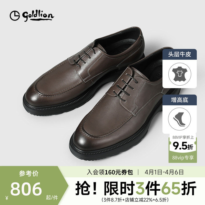 金利来男鞋官方正品春季新款棕色商务皮鞋男士三接头真皮增高婚鞋