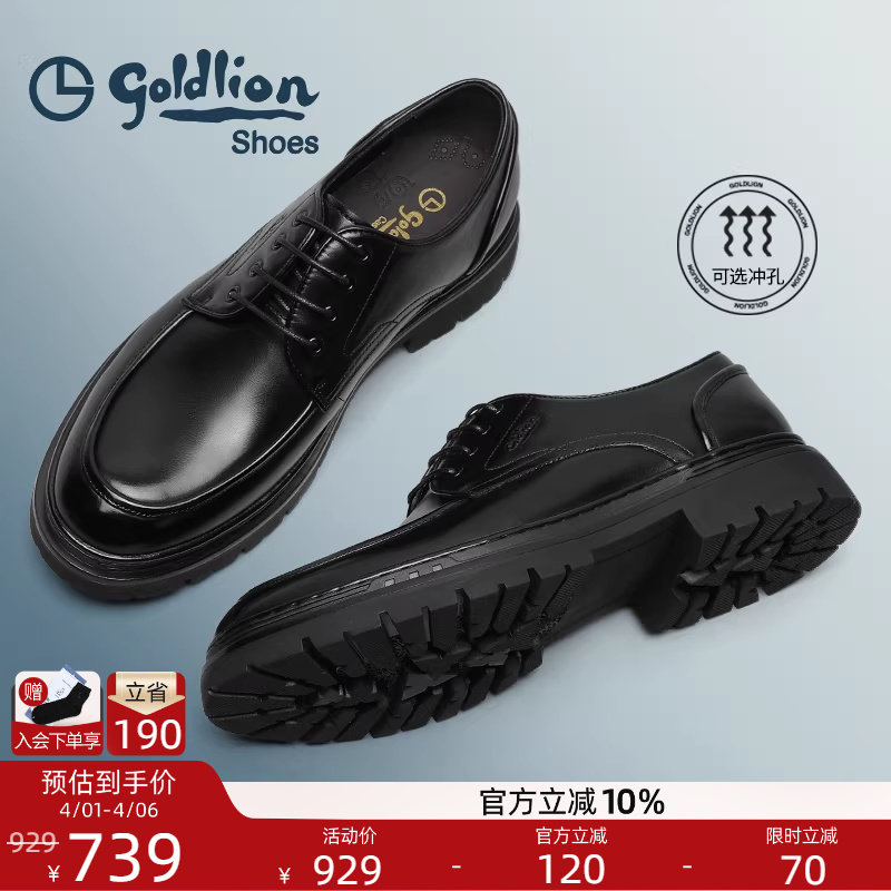 金利来男鞋官方正品春季新款商务休闲皮鞋男士真皮高档厚底德比鞋