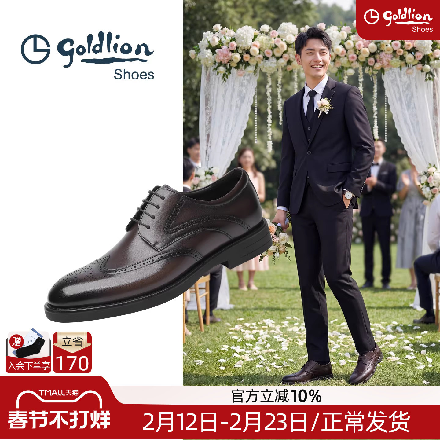 金利来男鞋官方正品春季新款商务皮鞋男士布洛克雕花真皮新郎结婚
