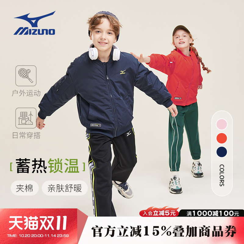 Mizuno美津浓儿童外套夹棉保暖休闲棒球棉服百搭男童女童秋冬新款