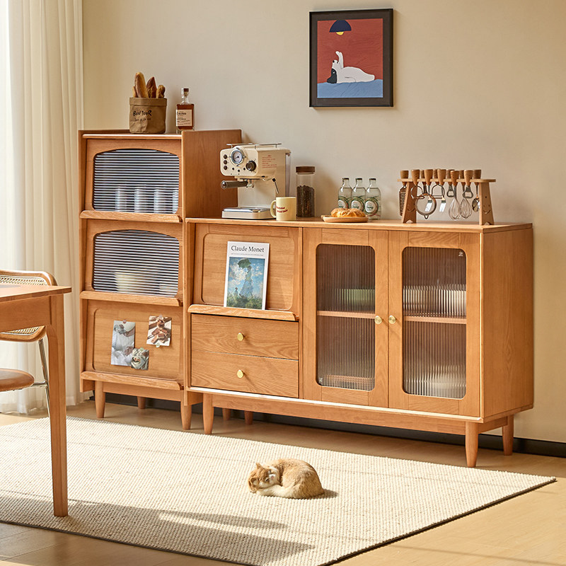实木餐边柜储物柜原木客厅一体靠墙厨房餐厅橱柜收纳茶水柜拉手款