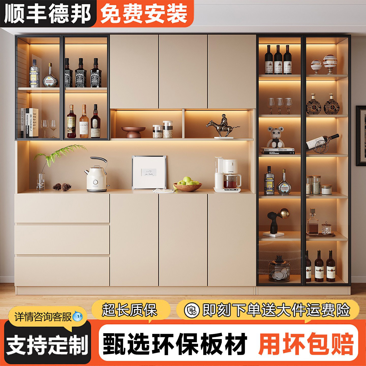 ENF级欧松板餐边柜高柜一体靠墙客厅餐厅收纳储物柜定制咖啡机柜