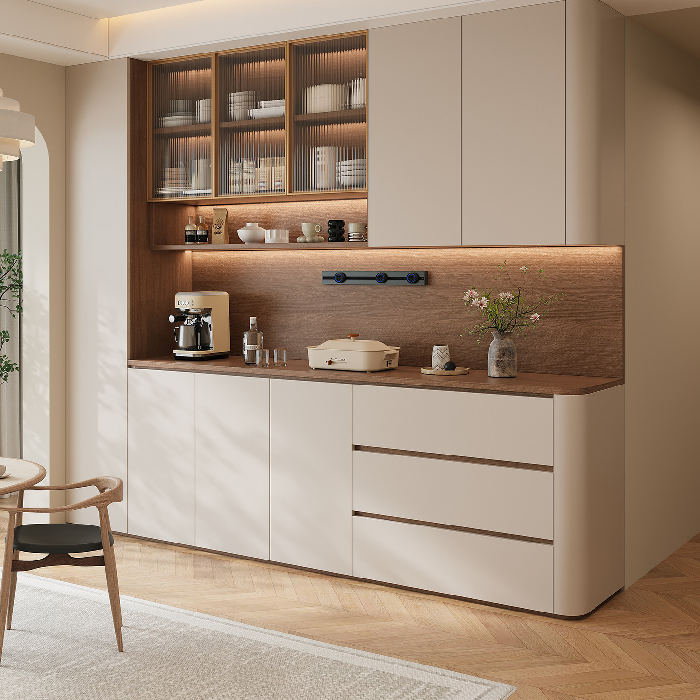 餐边柜客厅高柜靠墙一体茶水柜家用奶油风储物柜现代简约餐厅酒柜