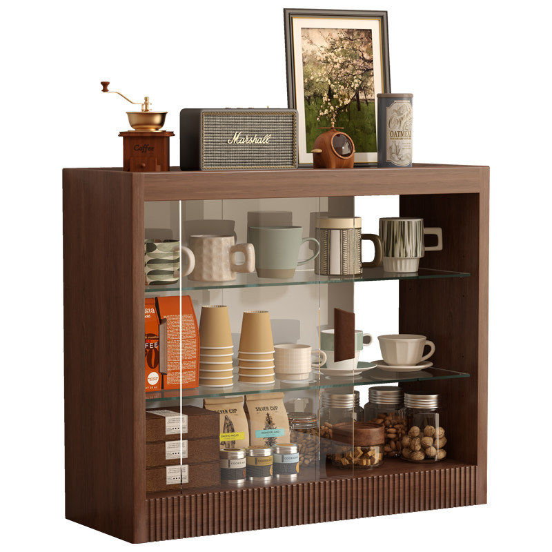 实木桌面杯子收纳置物柜置物架餐厅家用餐边柜咖啡杯玻璃移门柜子
