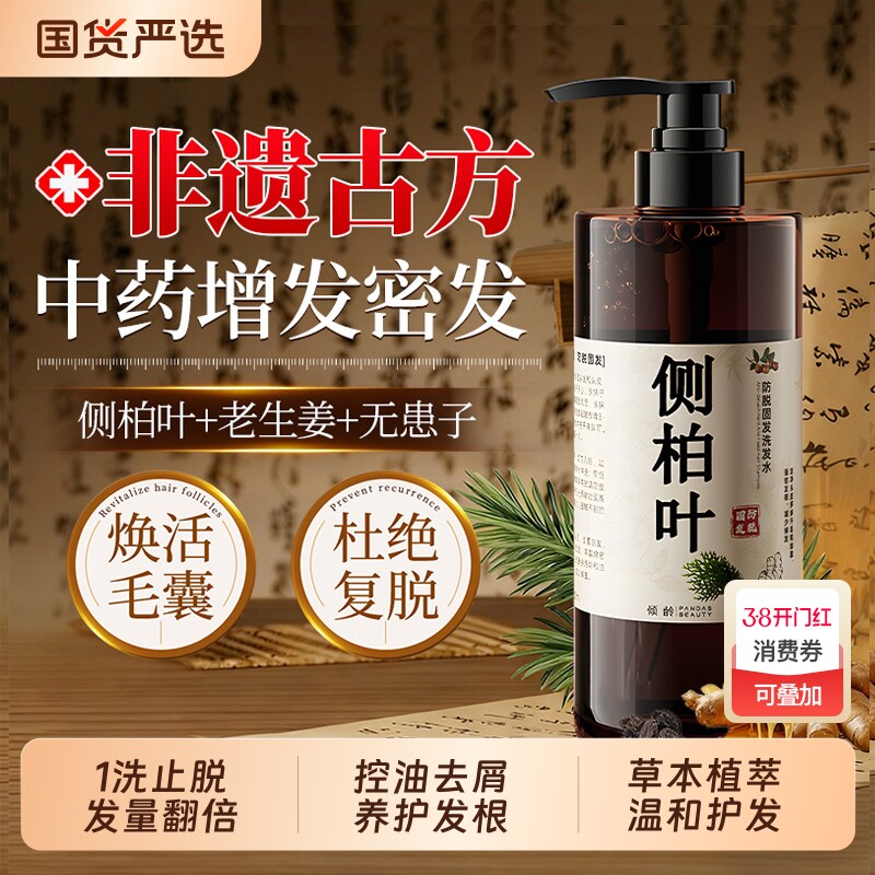 侧柏叶生姜洗发水防脱生发中药增发密发控油蓬松去屑止痒官方正品