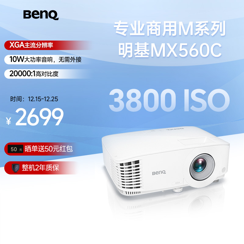 明基MX560C新品投影仪商用办公高亮高清会议室网课教学培训投影机benq(3800流明 高对比度)