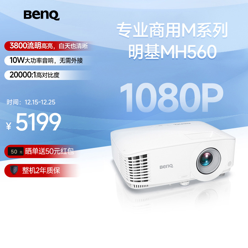 明基MH560投影仪商用办公高亮高清会议室网课教学培训投影机benq(1080P高清 3800流明)