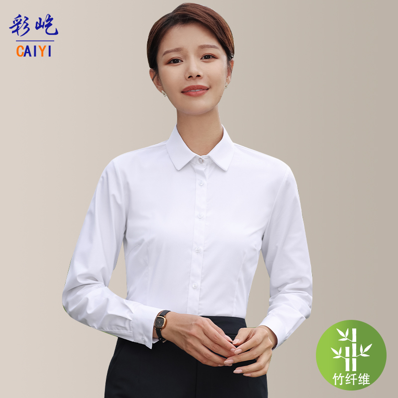 女衬衫の家银行长袖抗皱衬衫女职业装修身方领白色斜纹衬衣女正装