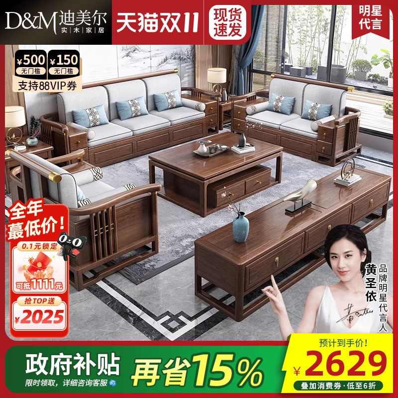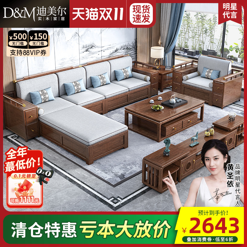新中式胡桃木沙发客厅小户型木质全实木组合简约冬夏两用工厂直销