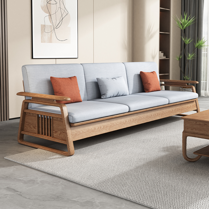 实木沙发新中式橡木真皮沙发北欧客厅小户型家具原木直排布艺沙发