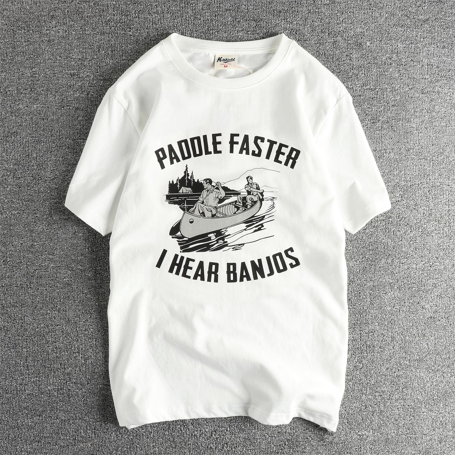 潮牌趣味钓鱼图案短袖T恤男水洗纯棉磨毛透气美式休闲青年半袖夏