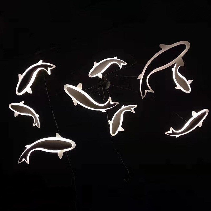新款婚庆灯光道具九头发光鱼吊灯婚礼场景布置舞台悬吊式天花板居
