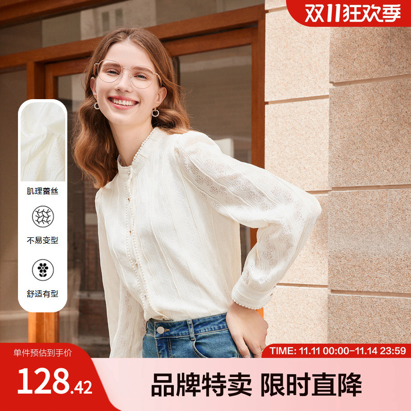 秋水伊人优雅浪漫风木耳边立领上衣2025年冬季新款时尚百搭蕾丝衫