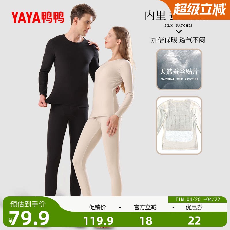 鸭鸭保暖内衣套装男女同款2025年冬新品圆领蚕丝保暖内衣保暖裤A