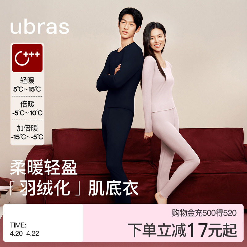 ubras大圆领保暖内衣男女士套装羽绒化发热抗菌低领肌底秋衣秋裤