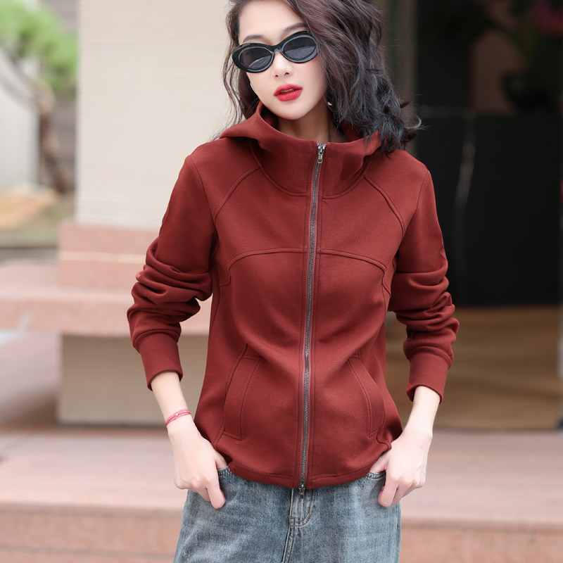 高端女装大码纯色连帽拉链长袖卫衣秋季2025新款休闲短款开衫外套