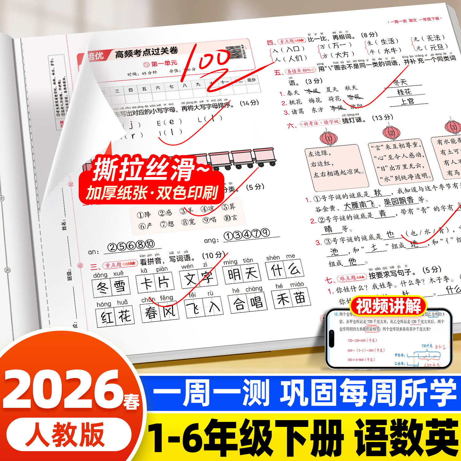 2026新版一年级二年级三年级四五六年级下册语文数学英语试卷测试卷全套人教版一周一测周末小测卷单元考试卷子同步练习题小学期中