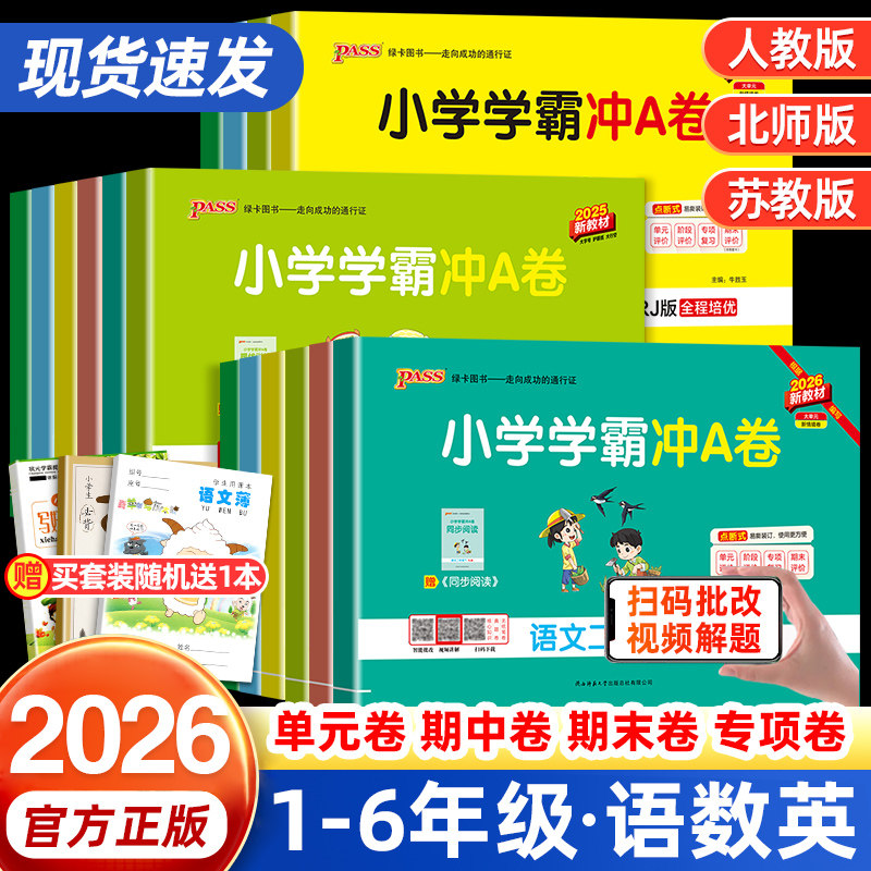 2026小学学霸冲a卷一年级二年级三四五六年级上册下册语文数学英语科学试卷测试卷全套人教版pass绿卡图书同步训练题单元期末卷子
