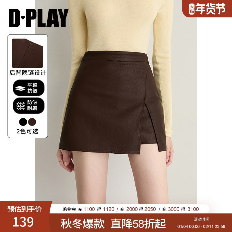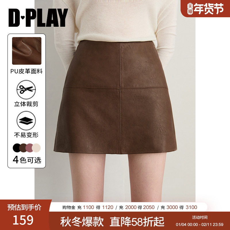 DPLAY【惠品】2026年春季新款棕色半身裙女短款好看裙子短裙皮裙