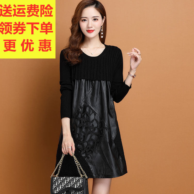 小个子打底连衣裙女秋冬配大衣2022新款中长款针织拼接皮裙子气质