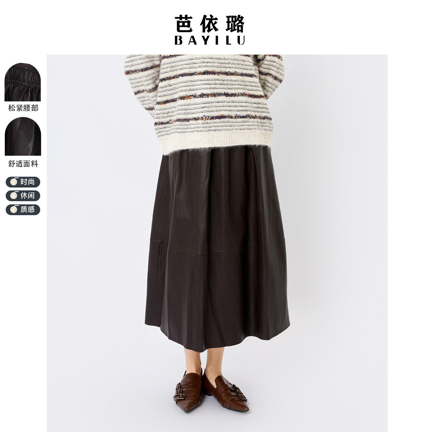 芭依璐2025冬季新款半身裙A字裙皮裙子高级感时尚高腰显瘦伞裙女