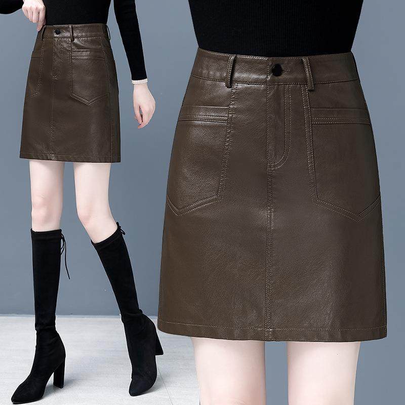 辣妹短裙咖色pu皮裙子半身裙女秋冬季新款高腰大码胖mm显瘦包臀裙