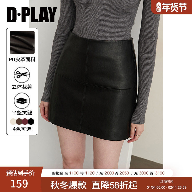DPLAY2026年春季新款黑色半身裙女气质短款裙子皮裙A字短裙半裙