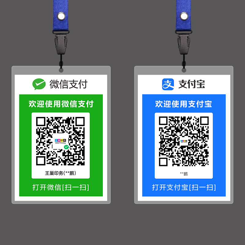 定做微信收钱码扫码展示牌胸牌支付宝收付款加好友二维码支付收款信息挂牌工作工牌卡套吊牌贴纸定制牌子挂绳
