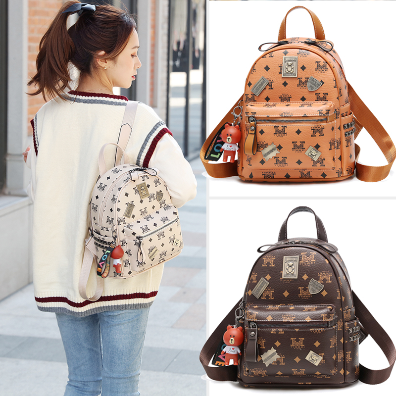 时尚铆钉双肩包女2024新款韩版百搭印花小背包女士休闲潮流旅行包