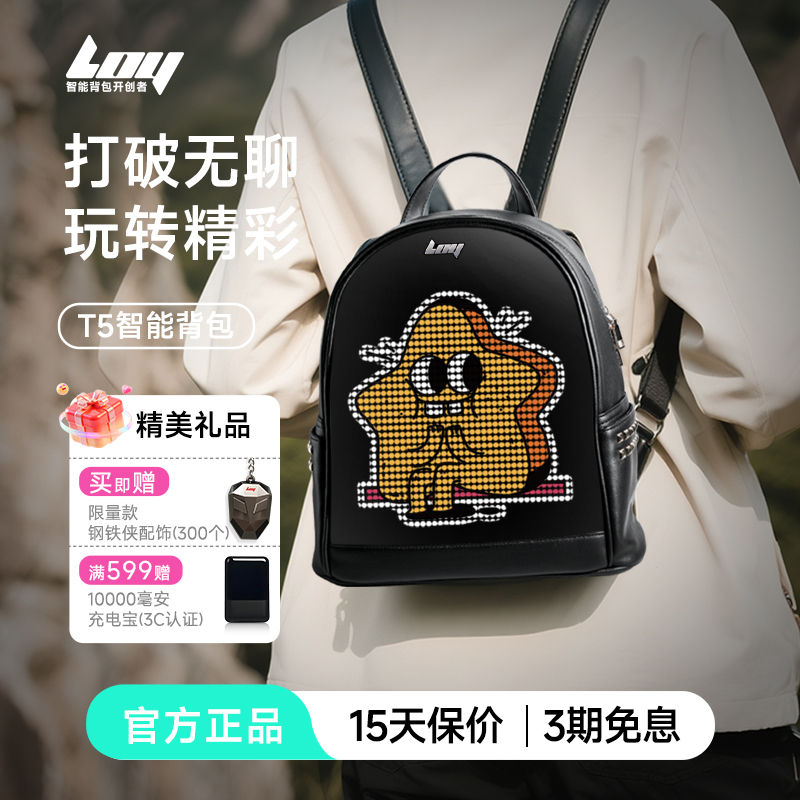 LOY背包T5像素包铆钉发光LED防水背包学生潮流休闲通勤双肩包礼物