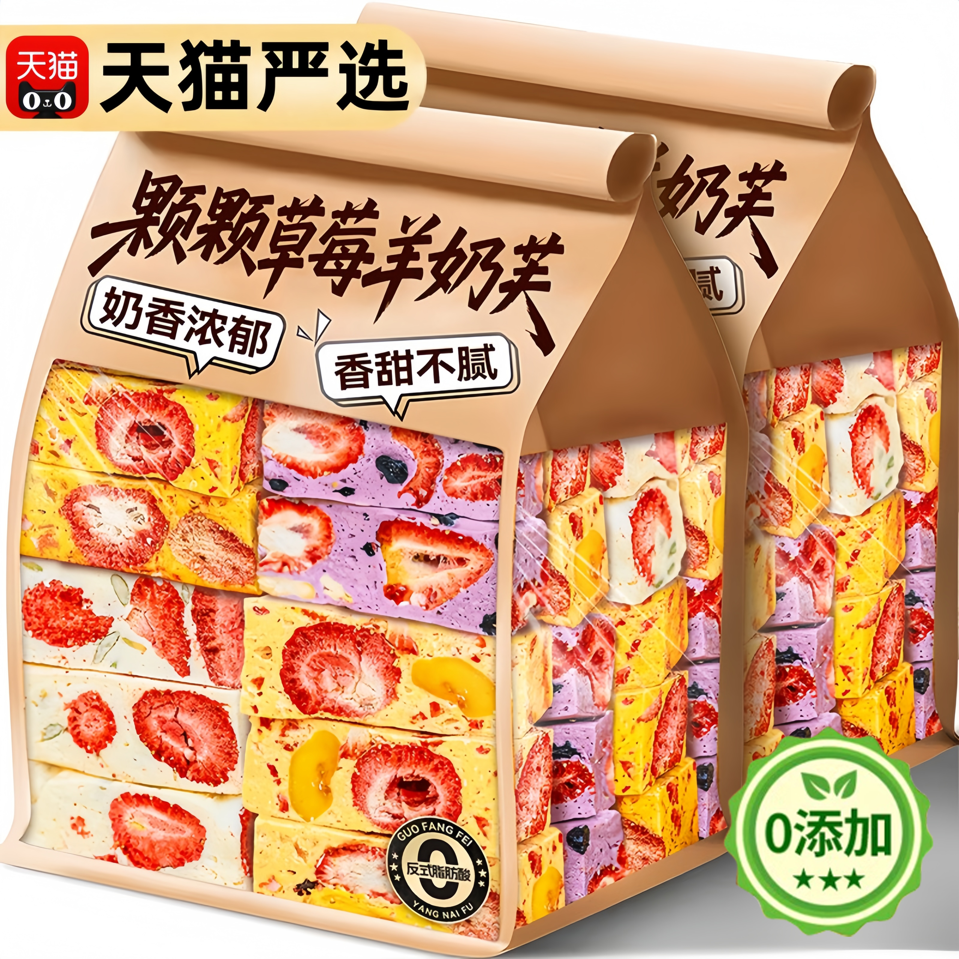 草莓羊奶芙雪花酥牛轧糖纯手工拉丝饼干网红糕点小零食官方旗舰店