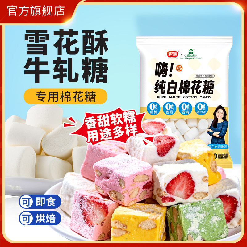 舒可曼郁香来纯白棉花糖500g手工牛轧糖雪花酥饼干家用烘焙材料