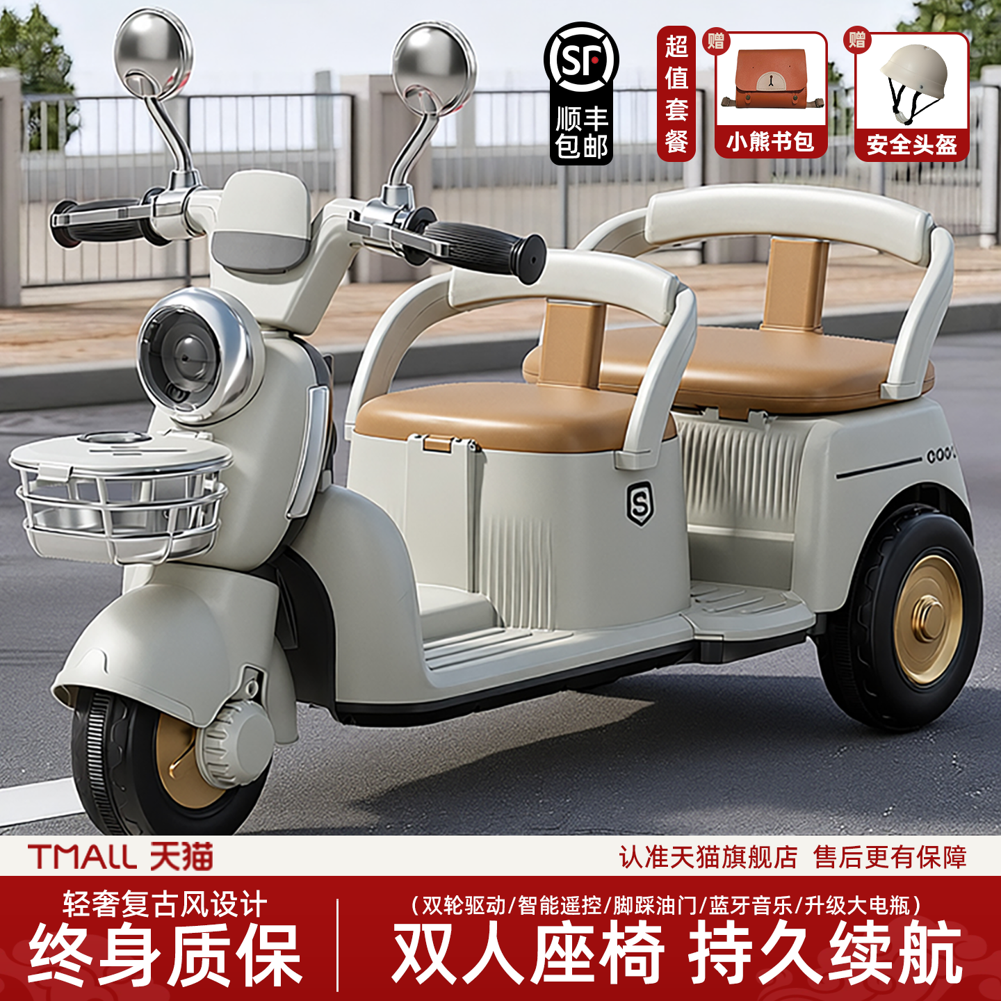 儿童电动摩托车男女宝宝充电三轮车小孩遥控双人玩具车可坐电瓶车