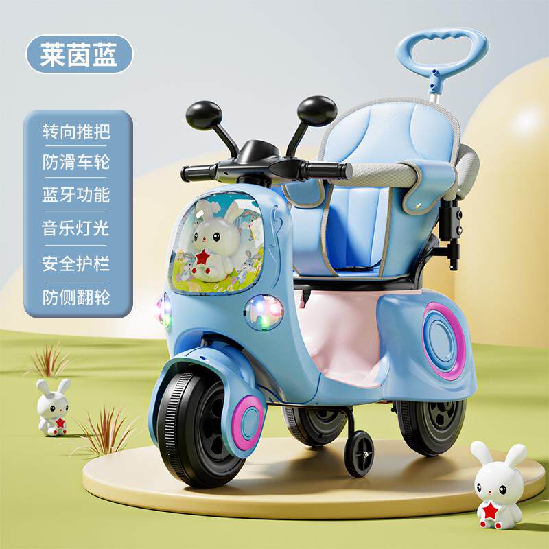 儿童电动摩托车2025新款宝宝车小孩可推可坐人双人遥控玩具三轮车