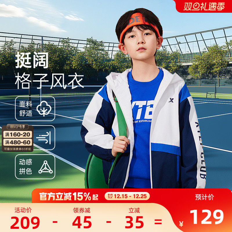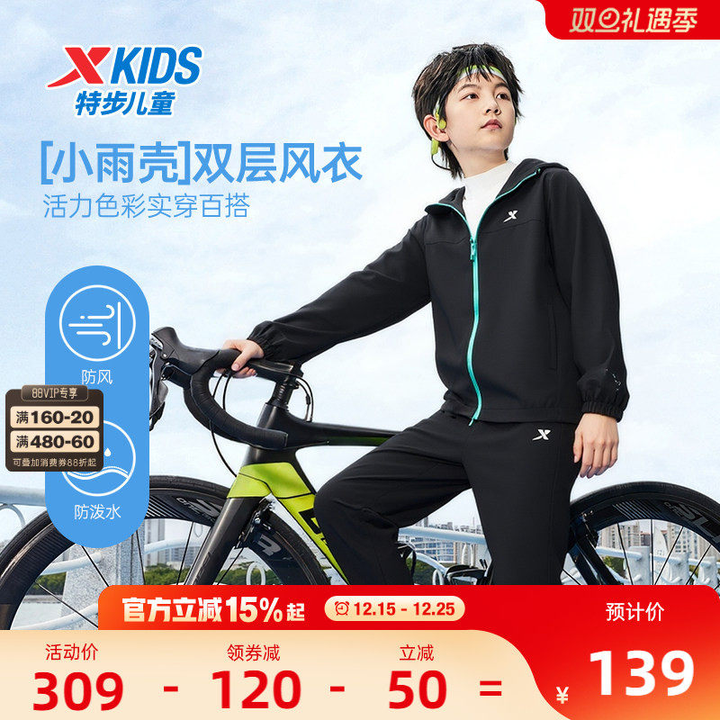 特步童装男童外套儿童冬季运动风衣薄款外套防风青少年上衣冬装男