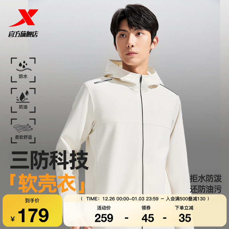 特步软壳衣男2025年秋冬新款训练薄款夹克风衣健身上衣运动外套男