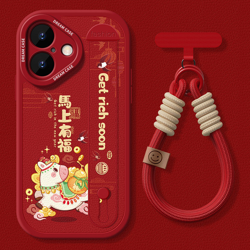 适用苹果17手机壳腕带iPhone15promax保护套新款ip16硅胶支架14plus防摔全包12mini马年文字ip13pro卡通8/7/6