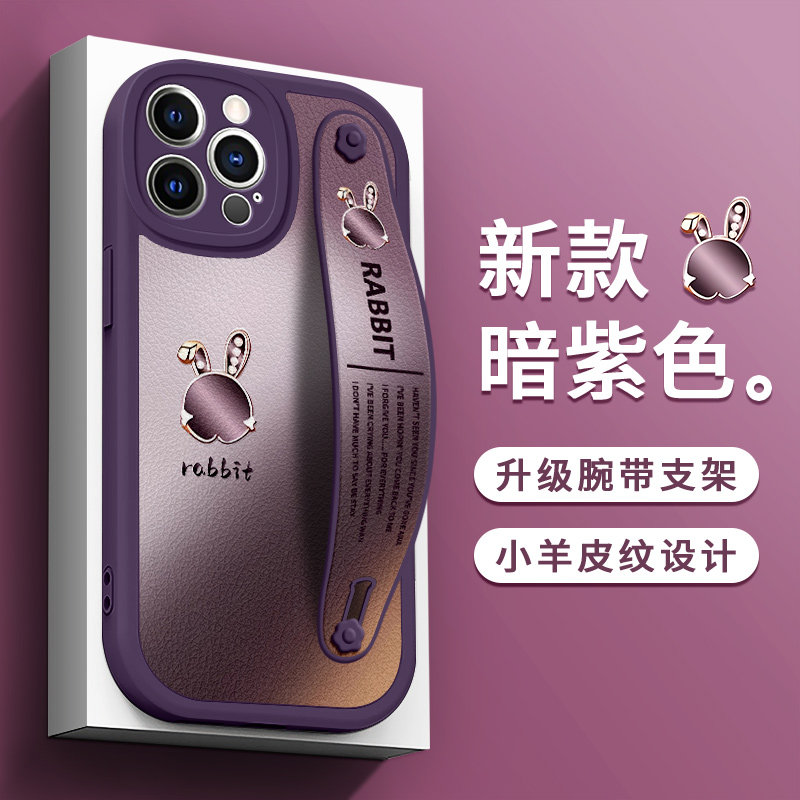 适用苹果16手机壳腕带iPhone15promax保护套新款ip13pro硅胶支架14plus防摔全包12mini发财小马11xr卡通8/7/6