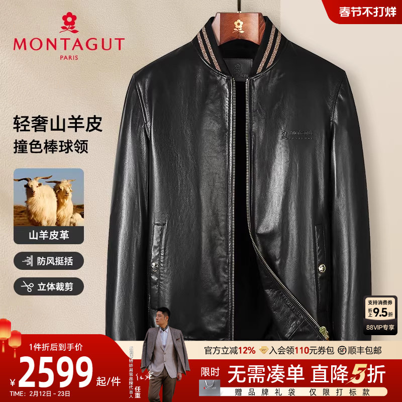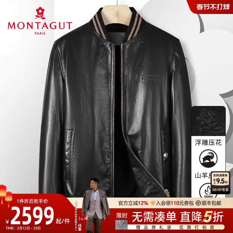 [轻奢山羊皮]梦特娇26春季男士真皮皮衣棒球领夹克防风保暖外套J