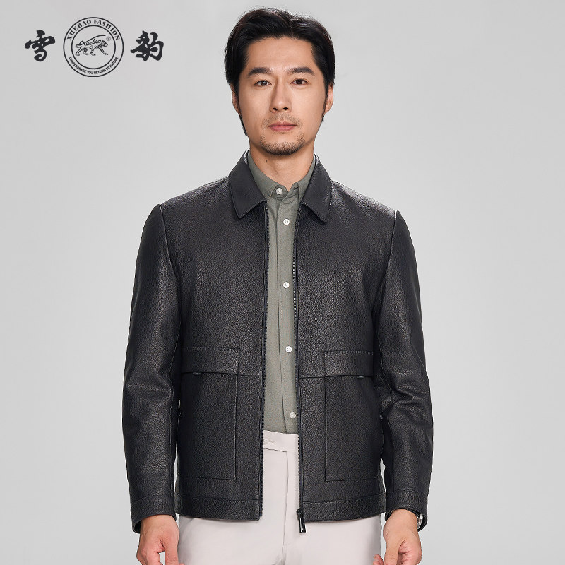 雪豹真皮皮衣男头层山羊皮商务休闲轻奢时尚体制内翻领行政皮外套