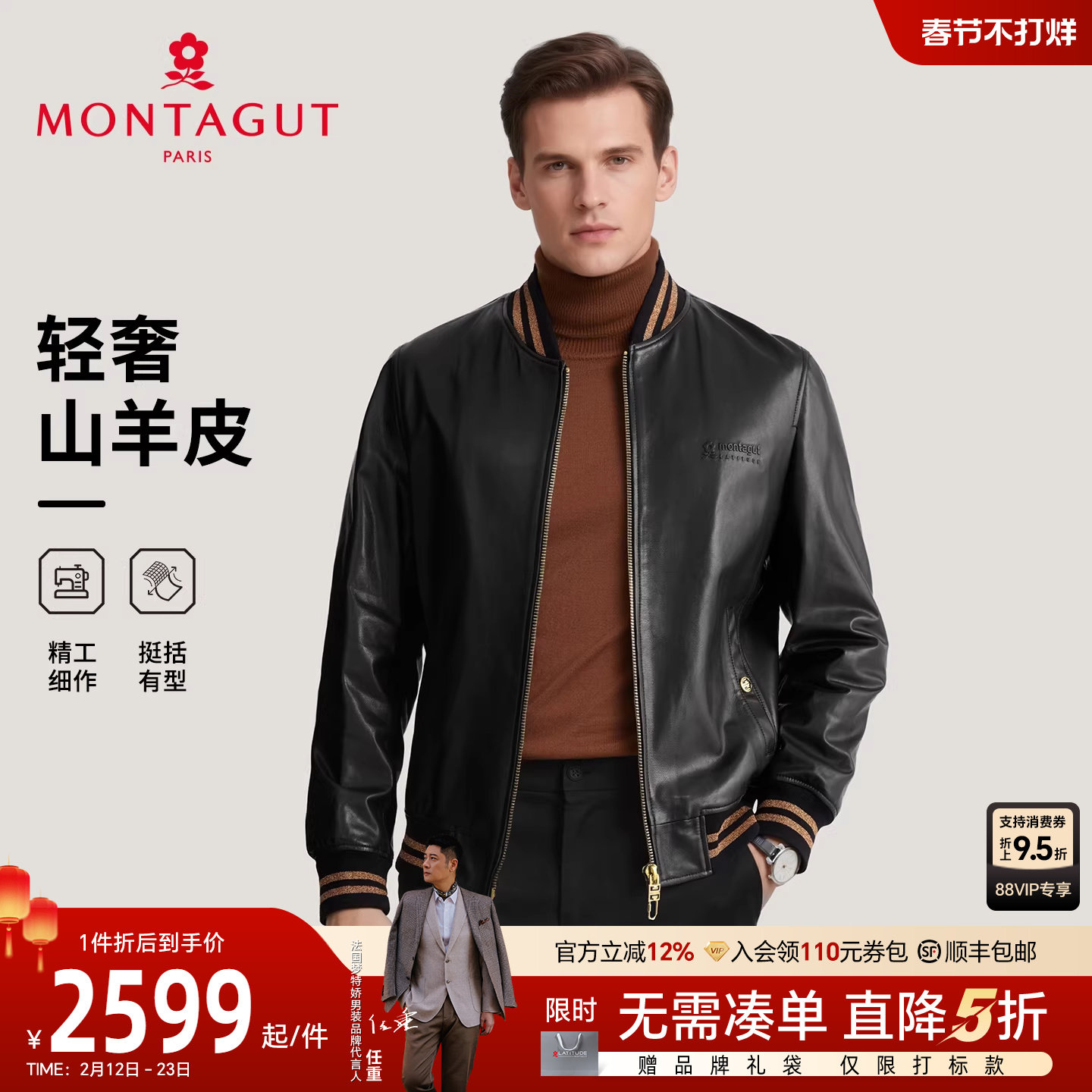 [轻奢山羊皮]梦特娇真皮皮衣男棒球领春季高端牛皮夹克保暖外套J