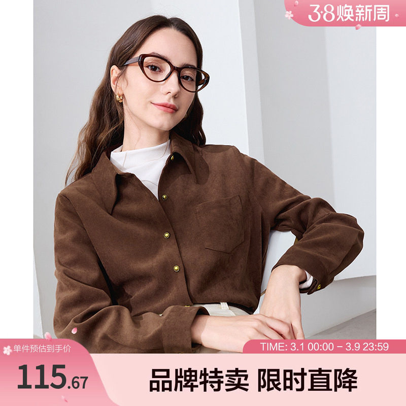 Navigare意大利小帆船灯芯绒衬衫女春季通勤长袖衬衣纯棉高档上衣