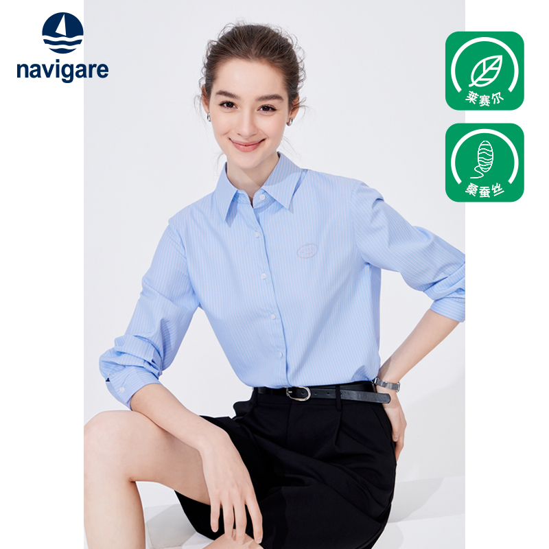 - 蓝白条纹衬衣女