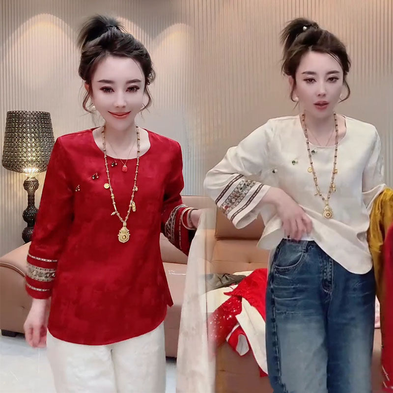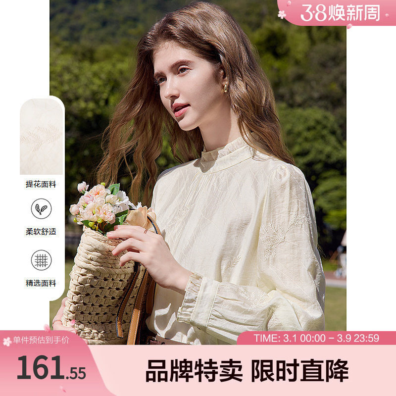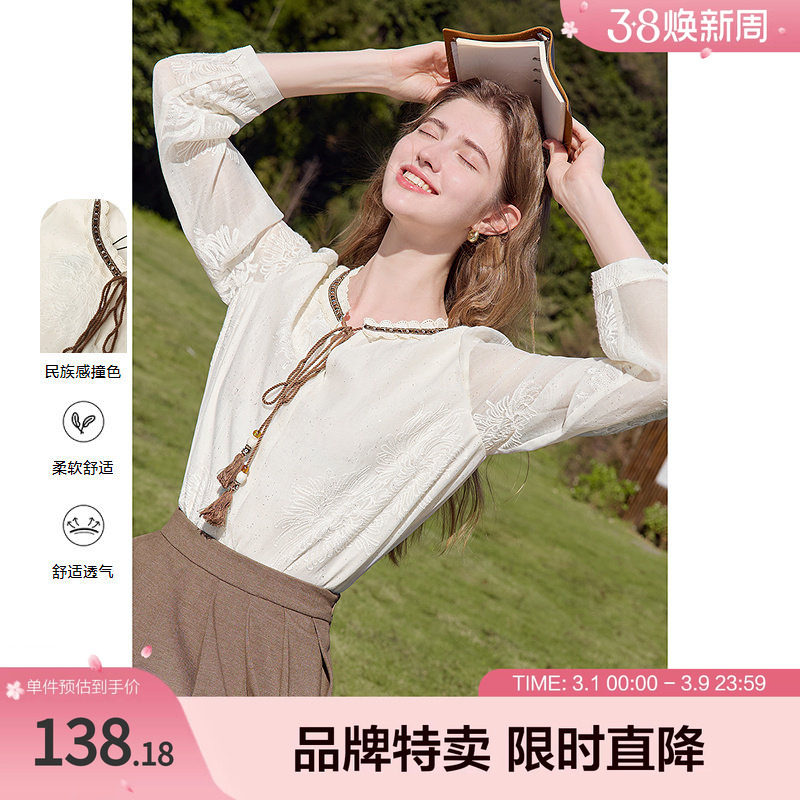 民族风衬衫女2026春新款气质女神范设计感不对称提花高档显瘦上衣