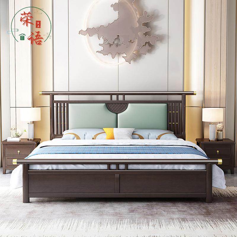 新中式实木床主卧1.8米双人大床现代简约橡木1.5米全实木软包婚床