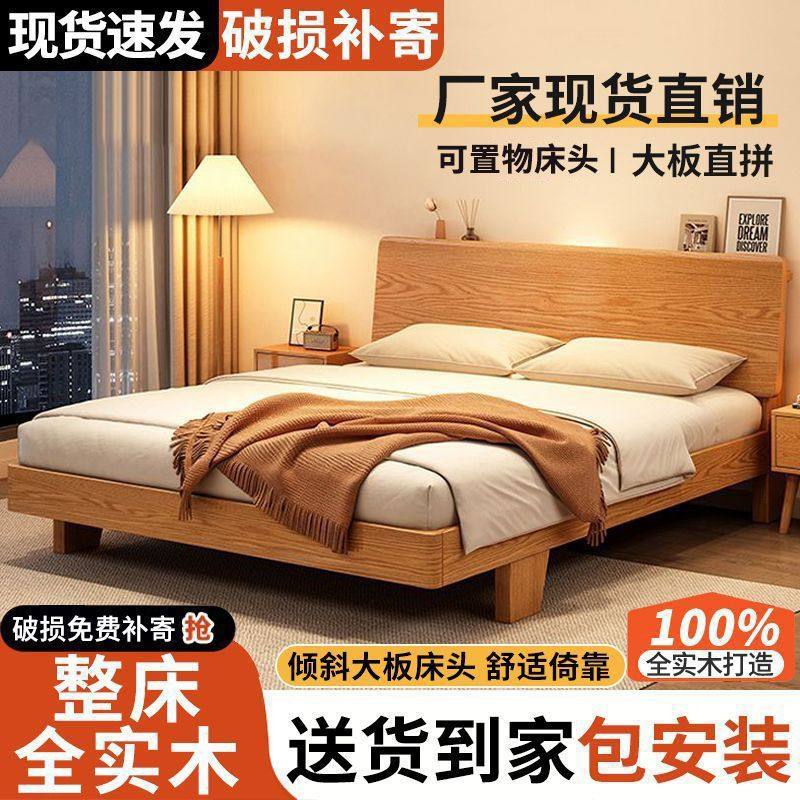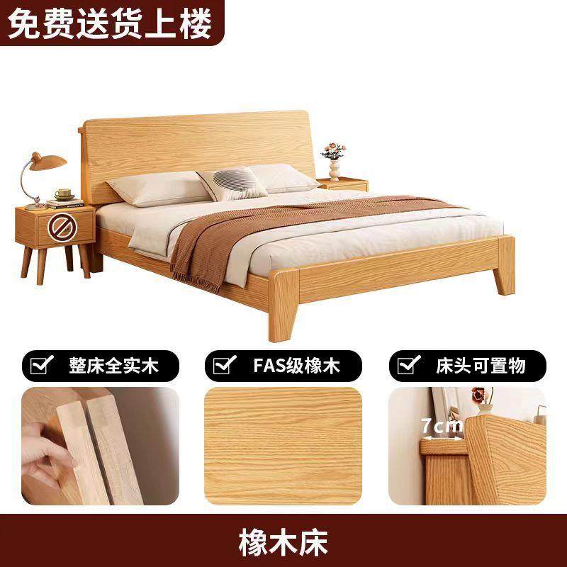 全实木床现代简约主卧橡木1.8双人床1.5米出租房加厚加宽单人床架